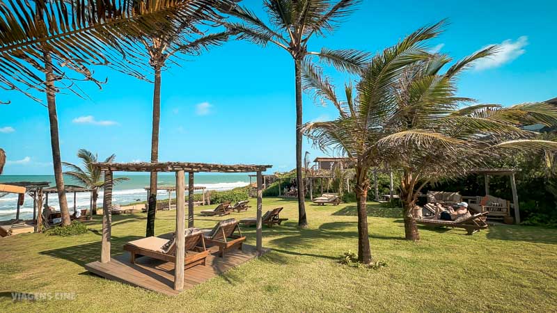 - Além do bar da piscina (nós achamos as opções de drinks um pouco limitadas), o Toca da Coruja possui um beach club, o Mar by Toca, que fica na Praia das Minas, uma praia mais deserta da Pipa. Por lá, a estrutura é é lindíssima, sobre um gramado que foi planejado para que todas as cadeiras e espreguiçadeiras tenhma vista para o mar.