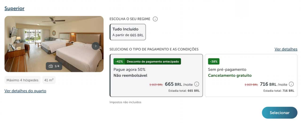 Caso você não encontre bons preços em sites como o Booking.com, vale pesquisar também pelo Skyscanner, que é um comparador de preços. O Skyscanner pesquisa diversos sites, inclusive o próprio site do resort, em busca do melhor preço disponível.